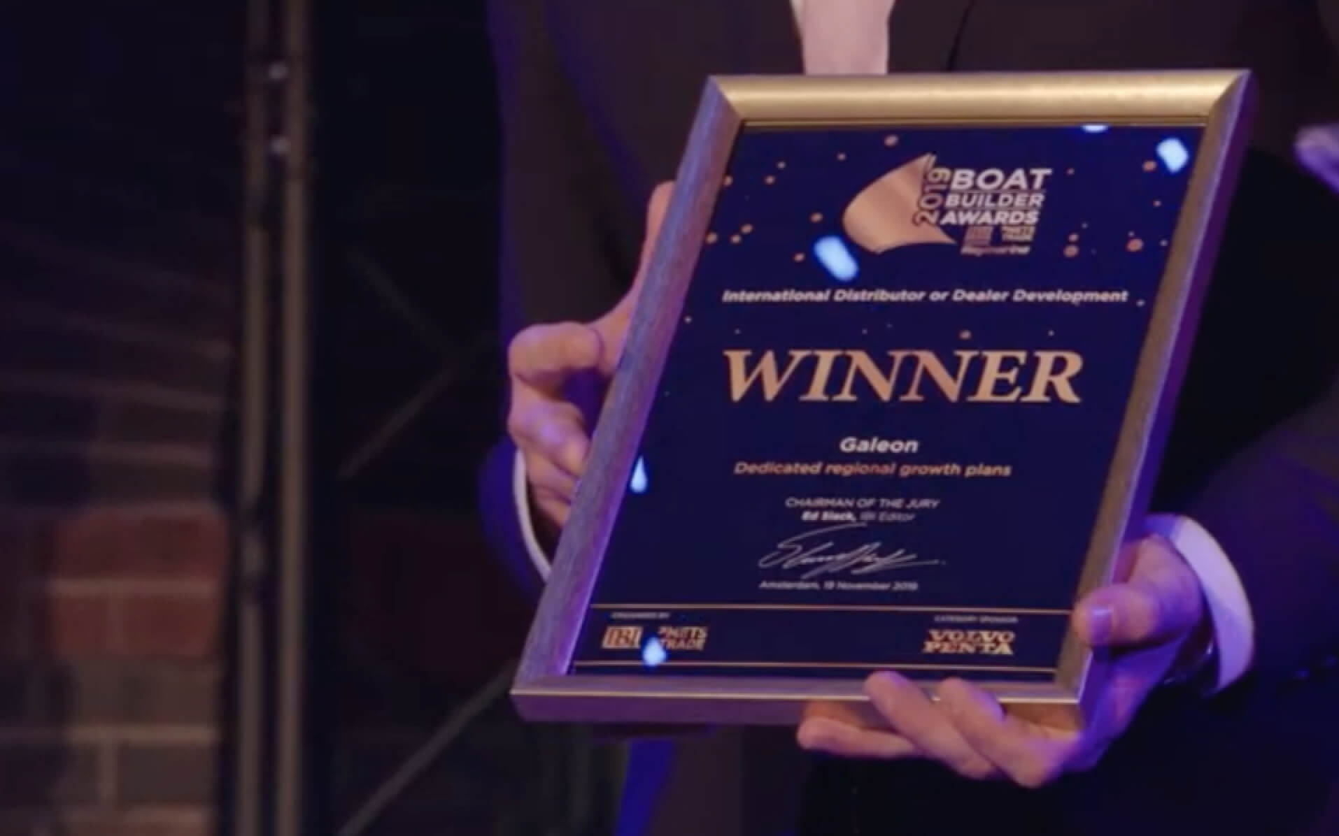 In 2019 Galeon Yachts received the Dealer Development Award at the Boat Builder Awards. This award is presented to individuals or teams who have generated significant growth of their boatbuilding business by expanding their distributor or dealer network, through export success, or by strengthening relationships with existing networks.