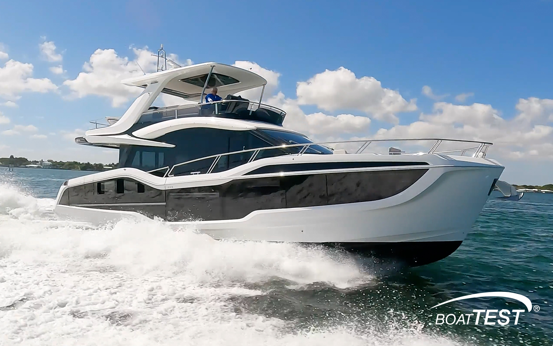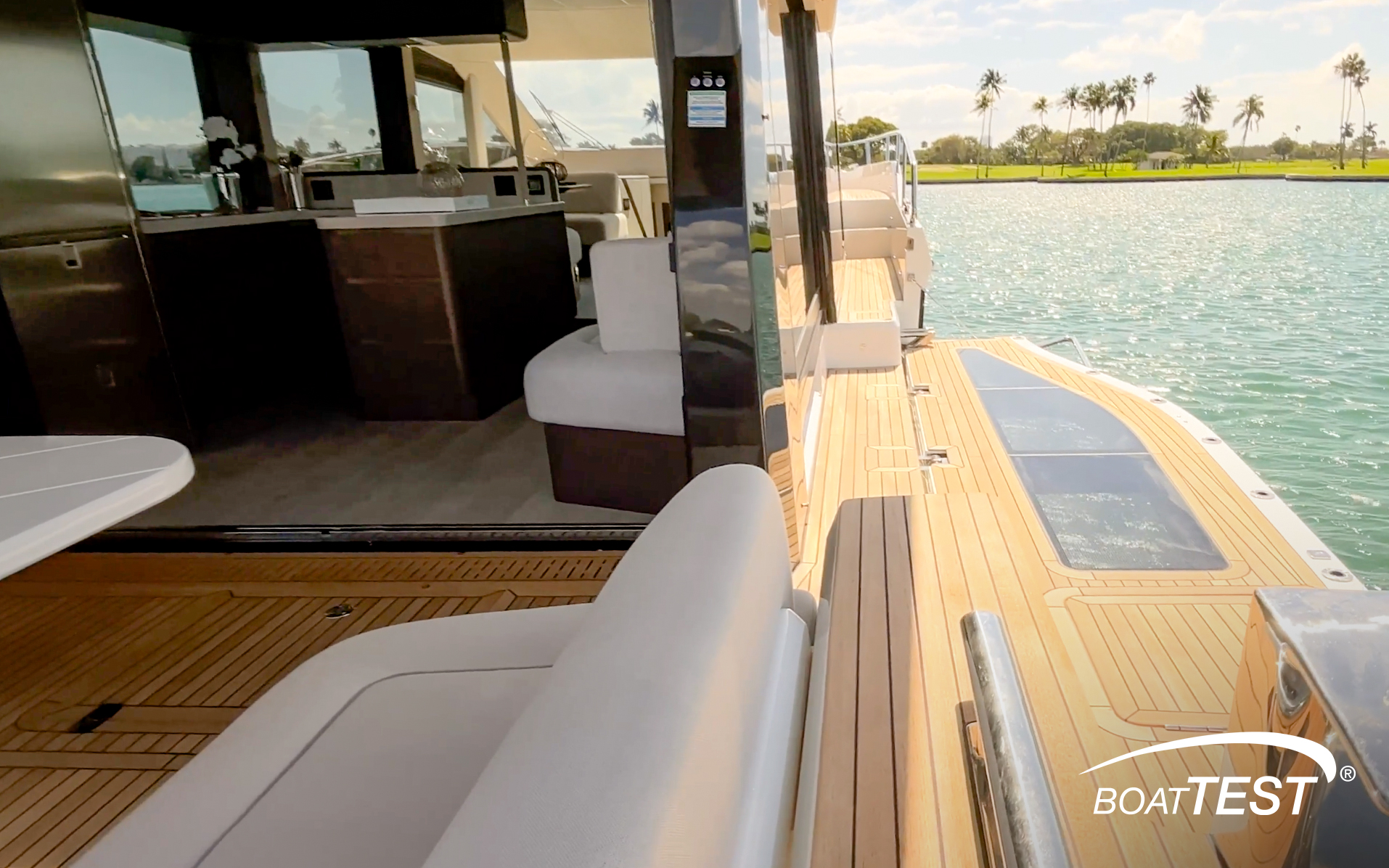The 560 FLY first grabs the eye with lines that are both muscular and playful. A wide beam that carries well forward gives this vessel a substantial presence. It’s a design choice that pulls double duty, allowing for unmatched interior volume, particularly on the accommodations level. But the 560 FLY has other attractive exterior aesthetics at play as well. Loads of glazing along the hullsides combine with massive windows on the main deck to create an airy and futuristic look. And when coupled with creatively designed bridge accents which appear to defy gravity, this is a yacht with lines to remember.